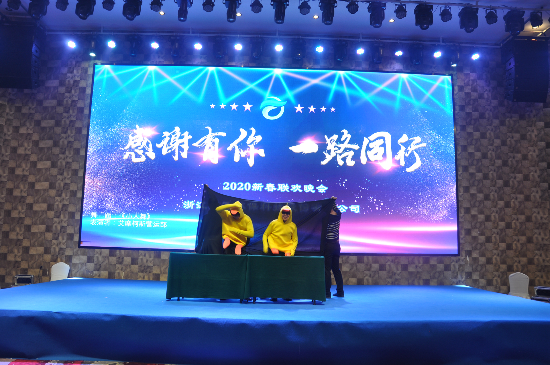 In the evening, in Jinhua hall, the New Year Party of Tianyi environmental protection & AMKS was held on time.